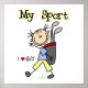 Golf My Sports T-shirts, capuzes, canecas, ímanes, cartões, autocolantes, chaveiros, garrafas de água, travesseiros, aglutinantes, revistas e outros roupa de golfe e presentes com uma figura de palito, uma dourada com clubes.