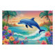 Pôster Golfinho e bela ilha tropical, Hibiscus
