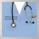 Decoração criativa para festa de graduação da escola de enfermagem com aventais azuis de hospital e uma chave canivete suíça engraçada no bolso. Para personalizar, edite o texto para adicionar o nome do formando.