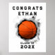 Poster de parabéns para mais velho e graduação de jogadores de basquetebol. Editar texto para adicionar nome e ano.