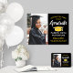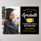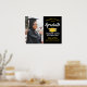 Adicione um toque personalizado a uma comemoração de faculdade ou segundo grau de graduação com uma foto personalizada preta e um poster dourado de 18"x24". A imagem e todos os textos neste modelo de sinal baixável são simples de personalizar, e as cores podem ser alteradas com a ferramenta Zazzle design. O design apresenta um boné de conselho de argamassa, uma elegante tipografia clássica, uma caligrafia na moda moderna e uma fotografia do formando, como uma fotografia de mais velho ou imagem da cerimônia de início. Observe que o ouro é amarelo impresso, não é folha metálica. Este poster de formatura imprimível é uma maneira elegante de dar boas vindas a amigos e familiares para uma celebração especial. Parabéns ao formando!