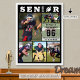 Crie um visor personalizado de fotografia de futebol impresso num impressão de poster ideal para o reconhecimento da noite de mais velho, banquete ou festa de formatura de prêmios que utilize este modelo de colagem de fotografias fácil de carregar com 6 imagens em várias formas e tamanhos, com o título MAIS VELHO incorporar o seu ano de aula e acentuado com um futebol, o nome do jogador, o número ou as iniciais escolares, o nome da escola e/ou o nome do mascote ou o texto personalizado na sua escolha cores de texto e fundo que você pode alterar para cores escolares no EDIT (mostradas com texto branco em preto). OPÇÕES: O exemplo é mostrado em um tamanho de 18 x 24 pol em Papel de Valor (Matte); outros tamanhos de impressão e qualidade de papel padrão e personalizados, arquivo de Download Digital Instantâneo para impressão local ou transferência do design para um conselho de espuma, faixa, canvas ou outras opções de produto estão disponíveis na página de pedido. DICA DE REDIMENSIONAMENTO: Escolha Tamanho Personalizado para bordas pares alterando a altura e a largura proporcionalmente após clicar no ícone UNLOCK (parece um link de cadeia). ASSISTÊNCIA: para obter ajuda com a modificação ou personalização do design, alteração de cor, redimensionamento ou transferência do design, entre em contato com o designer ANTES DE ENCOMENDAR através da guia MENSAGEM de Bate-papo Zazzle ou envie um e-mail para makeitaboutyoustore@gmail.com.