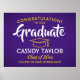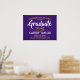 Adicione um toque personalizado a uma comemoração de faculdade ou segundo grau com um elegante roxo, ouro e poster branco de 18"x24". Todo texto é simples de personalizar. Design apresenta um fundo ombre roxo, boné conselho amarelo de argamassa, tipografia na moda moderna e caligrafia manuscrita de script. Observe que o ouro é impresso a cor, não a folha metálica. Esta placa de festa de formatura é uma maneira elegante de celebrar o dia especial. Parabéns ao formando!