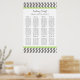 Gráfico de assentos de convidados elegante e contemporâneo de doze mesas 96 para o casamento em verde-maçã moderno, cinzas escuras de carvão e diversão branca e padrão zigzags de gesso retrô. Personalize com seu nome de hóspede para fazer um quadro único para seu casamento. Entre em contato conosco para obter um gráfico personalizado para um número diferente de convidados.