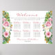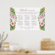 Gráfico de assentos de casamento fácil de atualizar com rosas rosa bonito e folhas verdes tropicais. Perfeito para a sua recepção de casamento. Escolha o papel desejado antes de colocar no seu carrinho de compro.