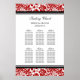 Personalização elegante e contemporânea de seis mesas 60 convidados assentos gráficos para o casamento no padrão clássico moderno vermelho, preto e branco do damasco floral. Personalize com seu nome de hóspede para fazer um quadro único para seu casamento. Entre em contato conosco para obter um gráfico personalizado para um número diferente de convidados.