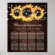 Complemente seu país rústico, ou festa de casamento de celeiro com este gráfico de assentos de girassol para 8 mesas com flores de girassol em um fundo de madeira de celeiro adornado com rendas florais brancas e luzes de cordas. Itens correspondentes disponíveis.