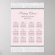 Gráfico de assentos de 12 mesas elegante e contemporâneo para casamento em cor-de-rosa-claro-claro moderno, cinzas e padrão clássico clássico de damasco floral branco. Personalize com seu nome de hóspede para fazer um quadro único para seu casamento. Entre em contato conosco para obter um gráfico personalizado para um número diferente de convidados.