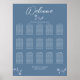 Este design apresenta um gráfico de assento de boas-vindas de casamento floral, número da mesa de assento do convidado, s elegante caligrafia moderna, s fonte tipográfica caprichosa, um quadro de pôster de recepção de casamento, uma decoração de recepção de casamento moderna e elegante, uma folhagem botânica verde, com tema de cor azul verdadeiro crepúsculo, um fundo azul simples com texto branco, para cartaz de gráfico de assento de recepção de casamento