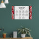 Gráfico de assentos de 10 mesas elegante e contemporâneo para casamento em padrão clássico de damasco floral clássico, vermelho, preto e branco moderno. Personalize com seu nome de hóspede para fazer um quadro único para seu casamento.