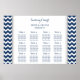 Gráfico de assentos de doze mesas elegante e contemporâneo para casamento em azul escuro moderno, cinza e diversão branca e padrão de riscas de zigzags retrorreflectores. Personalize com seu nome de hóspede para fazer um quadro único para seu casamento.