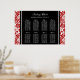 Gráfico de assentos de oito mesas elegante e contemporâneo, personalizável para o casamento em padrão clássico de damasco floral clássico, vermelho, preto e branco moderno. Personalize com seu nome de hóspede para fazer um quadro único para seu casamento. Entre em contato conosco para obter um gráfico personalizado para um número diferente de convidados.