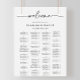 Este gráfico alfabético preto branco clássico é perfeito para um casamento moderno. O design simples e elegante apresenta a tipografia de scripts clássicos e ricos em preto e branco. Este sinal pode ser usado para organizar seus convidados em ordem alfabética ou por número de tabela. Ele tem espaço suficiente para cerca de 150 convidados de casamento. Deixe espaço para mais (ou menos) clicando no botão personalizar e aumente ou diminua o tamanho da fonte. Personalize este sinal com os nomes da noiva e do noivo e a data.