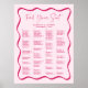 Guie seus convidados com facilidade usando este Poster de Gráfico de Casamento de Casamento de Quadro de Onda Moderno, Rosa. Um fundo de rosa claro e uma borda cor-de-rosa ondulada ao redor da sua lista de convidados organizada alfabeticamente para uma simples navegação. "Find Your Seat" (Encontre seu assento) é exibido no topo em um roteiro escrito a rosa, com seus nomes e data de casamento mostrados logo abaixo. Este poster de gráfico de assentos pode ser impresso ou baixado por profissionais instantaneamente para o impressão em casa.