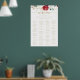 Este clássico assento floral de ouro é perfeito para um casamento rústico. A design apresenta a cor-de-água, flores brancas, borrifadas e douradas e bagas com folhagem verde dispostas em buquês elegantes. Este sinal pode ser usado para organizar seus convidados em ordem alfabética ou por número de tabela. Ele tem espaço suficiente para cerca de 150 convidados de casamento. Deixe espaço para mais (ou menos) clicando no botão personalizar e aumente ou diminua o tamanho da fonte. Personalize este sinal com os nomes da noiva e do noivo e a data.