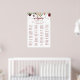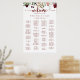 Esta tabela floral de verão é perfeita para um casamento simples. A design apresenta flores de aquarela, cor-de-rosa e borbulhante, com folhas verdes em fundo castanho manchado. Este sinal pode ser usado para organizar seus convidados em ordem alfabética ou por número de tabela. Ele tem espaço suficiente para cerca de 150 convidados de casamento. Deixe espaço para mais (ou menos) clicando no botão personalizar e aumente ou diminua o tamanho da fonte. Personalize este sinal com os nomes da noiva e do noivo e a data.
