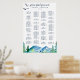 Este poster de assentos alfabéticos da Montanha Rocky é perfeito para um casamento ao ar livre. Este sinal pode ser usado para organizar seus convidados em ordem alfabética ou por número de tabela. O design apresenta uma paisagem de natureza selvagem pintada, azul e verde, com pinheiros de aquarela, pássaros e montanhas. Esta poster de casamento inclui espaço suficiente para cerca de 120 convidados. Deixe espaço para mais (ou menos) convidados clicando no botão "personalizar" e diminuindo ou aumentando o tamanho da fonte. Além do posicionamento de cada convidado, personalize este cartaz com os nomes da noiva e do noivo e a data do casamento.