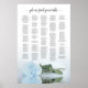 Este maravilhoso gráfico de assentos de casamento mostra uma foto de um rosa azul-pó longo, ou azul-poeirento, deitado do lado, refletindo em uma piscina de água com ondas e ondulações. O título diz "por favor, encontre sua mesa" na elegante caligrafia do roteiro de lacy. Há espaço para os até 250 nomes com os nomes do casal e a data do casamento abaixo. Uma maneira maravilhosa de ajudar seus convidados a encontrar suas mesas enquanto fazer sua recepção mais bonita.