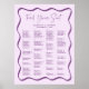 Guie seus convidados com facilidade usando este Poster de Gráfico de Casamento de Casamento de Frame Roxo Moderno. Um fundo roxo claro e uma borda ondulada roxa em negrito enquadram sua lista de convidados, exibida em ordem alfabética para uma navegação simples. No topo, "Find Your Seat" (Encontre seu assento) é destacado em um roteiro roxo manuscrito, com seus nomes e data de casamento apresentados abaixo. Funcional e na moda, este poster de gráfico de assentos está disponível como impressão profissional ou download instantâneo.