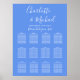 Elegante gráfico de assentos de casamento azul cornflower com nomes em estilo assinatura, este gráfico de assentos chic e elegante pode ser personalizado com suas informações em letras modernas. Projetado por Thisisnotme