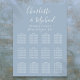 Gráfico de assentos de casamento azul empoeirado elegante assinatura com nomes de estilo assinatura, este gráfico de assentos chic e elegante pode ser personalizado com suas informações em letras brancas modernas. Projetado por Thisisnotme©