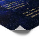 Um gráfico de assentos alfabético para um tema de casamento celestial, com a lua e estrela em um fundo azul de noite estrelada. A lua, as estrelas e o texto são dourados. A palavra Bem-vindo é escrita em uma fonte caligráfica elegante.