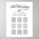 O design do cartaz de gráfico de assentos de casamento com caligrafia preta elegante apresenta um monograma dos nomes dos noivos e data do casamento e texto de modelo personalizado para números de mesa e nomes dos convidados. Cores preto e branco.