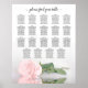 Esta bela tabela de 19 mesas de assentos de casamento apresenta uma design romântica com uma rosa rosa-rosa pincelada solteiro refletindo em água com ondas e ondulações. O título diz "por favor, encontre sua mesa" na caligrafia de scripts antigos. Há espaço para os nomes do casal e da data do casamento. Este gráfico tem atribuições de mesa para 190 convidados - 10 pessoas por mesa.