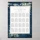 Este gráfico de assentos com folhas de eucalipto verde elegante apresenta luzes de corda bonitas e folhas delicadas em aquarela com o plano de assentos dos seus convidados emoldurado por uma borda dourada em um fundo de madeira rústica azul. Criado por Thisisnotme©