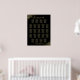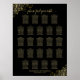 Este lindo gráfico de assentos de casamento de 23 mesas apresenta um simples, mas elegante design com texto em ouro sobre fundo preto e um filigre floral de ouro lacrado nos cantos. O título da caligrafia do script diz: Por favor, encontre sua mesa. Contém atribuições de mesa para 230 convidados em 10 convidados por mesa.