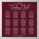 Este lindo gráfico de 12 mesas de assentos de casamento vai facilitar aos seus convidados encontrar os assentos atribuídos na sua recepção. Possui um design simples, mas elegante, com texto de cinza sobre fundo burgundy e borda de filamento floral de folha de papel fina prateada.