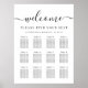 Elegante poster de assentos de casamento baixável para até 12 mesas com "boas-vindas" em um roteiro de na moda com baloiços, "Encontre seu assento", seus nomes e data de casamento em tipografia elegante da serif, e os números de tabelas e nomes de convidados em uma simples tipografia moderna. Selecione a opção de download digital a ser editada com alterações de última hora e impressão localmente.