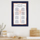 Adicione seu próprio toque especial a este elegante design com roteiro moderno e texto azul marinho, incluindo uma silhueta de palmeira de ouro-rosa artístico com uma estrutura de cobre rosa-ouro metálica. Este design apresenta os nomes da noiva e do noivo juntamente com as palavras "Coma, Beba e Seja Feliz" e "Por favor, encontre seu assento". Modelos são fornecidas para até oito mesas com até 8 ou 9 nomes por mesa.