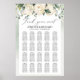 Gráfico de assentos de casamentos de rosas brancas verdes, com folhas de aquarela pastor modernas e hidrangea branca. 20 mesas. Contacte-me para personalizar.Rosas emborrachados ©