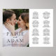 Gráfico de assentos de casamento em estilo editorial moderno com seus nomes em tipografia negrito sobre sua foto favorita. Um design limpo e simples para um casamento em qualquer época do ano.