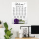 Aumente a elegância, a sofisticação e o encanto da sua recepção de casamento com este elegante assento gráfico. Este espantoso design floral contemporâneo apresenta um rosa roxo roxo roxo roxo, romântico, que repousa horizontalmente e reflete numa piscina serena de água. Pode acolher até 190 convidados, sentados a 19 mesas com 10 lugares por mesa. O gracioso título da caligrafia diz "Bem-vindo! Por favor, encontre sua mesa" com espaço para os nomes dos casais e data de casamento no fundo.
