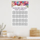 Gráfico de assentos florais de aquarelas. Por favor, encontre seu assento e a noiva e os nomes do noivo estão no topo. Muito fácil mudar o texto do modelo para os seus nomes de hóspedes. Uma combinação maravilhosa de flores roxas e rosa com traços de roxo e azul. Muitas culturas verdes com vinha e folhas cortadas fazem dela um design floral muito moderno. Tem um pouco de vibração do Boho Chic, por causa da paisagem verde. O texto é uma púrpura escura e pálida para pegar uma das tendências de cor mais quentes da estação. Também complementa perfeitamente as flores. Fácil de personalizar. Copie e passe este link no navegador para ver todos os itens coordenadores: goo.gl/bDYWnb