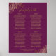 Este lindo gráfico de assentos de casamento de 4 mesas inclui atribuições de mesa para 40 convidados, com 10 pessoas em cada mesa. O design é simples, mas elegante, com texto dourado sobre fundo magenta ou roxo do gabinete e apresenta um filigre floral herdado nos cantos e um título de caligrafia com script de rico com a leitura "por favor encontre sua mesa". Sofisticado e chique.