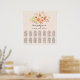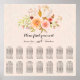 Design elegante, porém simples, com flores pintadas manualmente a aquarela e folhagem em cores pastéis quentes no outono, sobre um fundo cor-de-rosa pincelado com espirais úmidas de damasco de marfim. Gráfico de assentos de mesa que inclui assentos para até 140 e 14 mesas. Você pode excluir uma mesa ou alterar o número de convidados no mesa usando o recurso personalizá-la. Design, Audrey Jeanne Roberts.