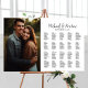 Gráfico elegante de assentos de casamento com um simples design com seus nomes em cima de sua foto favorita. Basta editar as mesas e os nomes. Disponível em formato impresso ou como arquivo descarregável. Este quadro de assentos irá certamente adicionar um toque especial ao seu design de casamento!