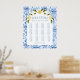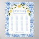 Experimente o romance do nosso elegante poster de assentos, inspirado pela beleza eterno da porcelana italiana mediterrânica. Com um design captivante com ramos de limão de aquarela adornando um arco de boho e complementado por um padrão de azulejos de porcelana azul, este gráfico acomoda até 12 mesas. Deixe essa poster encantadora adicionar um pouco de sofisticação à sua decoração de casamento. Explore nossa coleção para mais opções de papelaria de casamento para elevar seu dia especial.