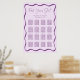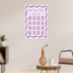 Mantenha um layout claro com este Poster de Gráfico de Casamento de Casamento de Moldura Roxo Moderno. Um fundo roxo leve com uma borda ondulada roxa arrojada mostra até 16 mesas, com nomes de convidados exibidos abaixo de cada cabeçalho. No topo, "Find Your Seat" (Encontre seu assento) é escrito em texto manuscrito, enquanto seus nomes e data de casamento personalizam o design. Escolha um impressão profissional ou um download instantâneo para impressão em casa.