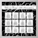 Gráfico de assentos preto e branco elegante para uma festa entre 85 e 120 pessoas. Adequação aos aniversários, casamentos, aniversários e outros eventos especiais. Ficaríamos felizes em ajudá-lo a personalizar ainda mais este gráfico para o número de convidados e mesas no seu casamento ou festa formal. A cor de fundo e as cores do texto são todos personalizáveis.