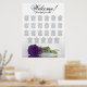 Faça uma declaração na sua recepção de casamento com este elegante quadro de 23 mesas. O design floral moderno apresenta um profundo rosa roxo roxo surpreendente que repousa horizontalmente, refletindo elegantemente numa piscina serena de água. O gráfico pode acomodar até 230 convidados com 10 lugares por mesa. O título está escrito em uma caligrafia elegante, acolhendo seus convidados e guiando-os para suas mesas designadas. A parte inferior do gráfico é dedicada aos nomes do casal e sua data de casamento, adicionando um toque personalizado à sua decoração. Este gráfico de assentos exuta uma vibração romântica, graciosa, elegante e glamourosa, fazer a forma perfeita de elevar o estilo e elegância da sua recepção de casamento e, ao mesmo tempo, simplificar os arranjos de assentos para os seus convidados.
