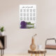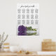 Este elegante quadro de 15 mesas de assentos de casamento apresenta um belo rosa de cor roxa ametista refletindo em água com ondas e ondulações. O título diz "por favor, encontre sua mesa" na caligrafia de scripts antigos. Há espaço para os nomes do casal e da data do casamento. Este gráfico tem atribuições de mesa para 150 convidados - 10 pessoas por mesa. É dimensionado para um poster padrão A1 (tamanho europeu).