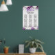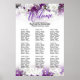 Este Gráfico de Assentos de Recepção de casamento apresenta uma adorável design Floral Branco e Roxo que ajudará seus convidados de recepção de casamento a encontrar suas mesas e também combinar com suas cores de casamento escolhidas. O gráfico mede 20X30 polegadas (50,8x76,2 cm) e pode ser montado sem esforço em um conselho ou parede. Os nomes dos hóspedes foram organizados alfabeticamente para cada mesa, garantindo um arranjo regular de lugares. Se você precisar de um tamanho diferente, sinta-se à vontade para explorar outras opções que mantêm uma proporção semelhante.