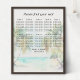 Este elegante e belo quadro de assentos de mesa de casamentos de aquarelas mostra uma praia, céu azul e palmeiras. O texto combina o script manuscrito e as fontes sans serif para uma aparência na moda e moderna. Isto é perfeito para uma praia de verão ou um casamento de destino tropical.