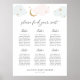 Bem-vindos aos seus convidados de chá com este gráfico de assentos com nuvens e estrelas com lua dourada. Deixe espaço para mais (ou menos) convidados clicando no botão "personalizar" e diminuindo ou aumentando o tamanho da fonte. Mesas extras também podem ser excluídas. Além da colocação de cada convidado.