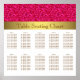 Gráfico de assentos de mesas de casamento, cor-de-rosa-quente e dourado. Você pode mover os elementos de design conforme necessário e escolher o estilo de fonte, o tamanho e a cor de sua preferência.