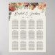 O gráfico de assentos de hóspedes contém seus nomes em letras elegantes de script de caligrafia, com sua data de casamento e suas mesas de hóspedes por baixo. Espaço previsto até 12 mesas. Projetado para maquear nosso casamento e coleção de eventos Rustic Bloom, com florais de aquarela e folhagem em tons de terra mutados no outono.